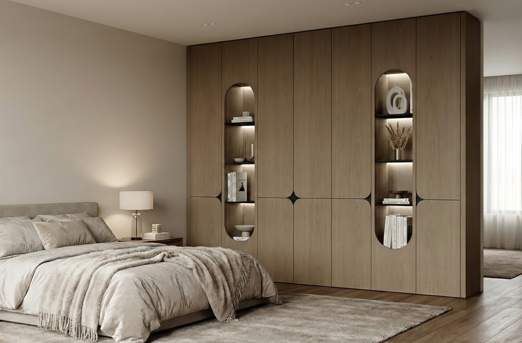 Arnova Gardırop, minimalist çizgileri ve fonksiyonel tasarımıyla yatak odalarına düzenli ve zarif bir görünüm kazandırır. Geniş iç hacmi, akılcı raf ve askı bölmeleri sayesinde kıyafet ve aksesuarların pratik şekilde yerleştirilmesini sağlar. Kaliteli malzeme seçimi ve dayanıklı mekanizmaları uzun ömürlü kullanım sunarken, modern yüzey dokusu mekâna sakin ve seçkin bir atmosfer katıyor. Arnova, estetik ve kullanışlılığı bir arada isteyenler için ideal bir tercih.