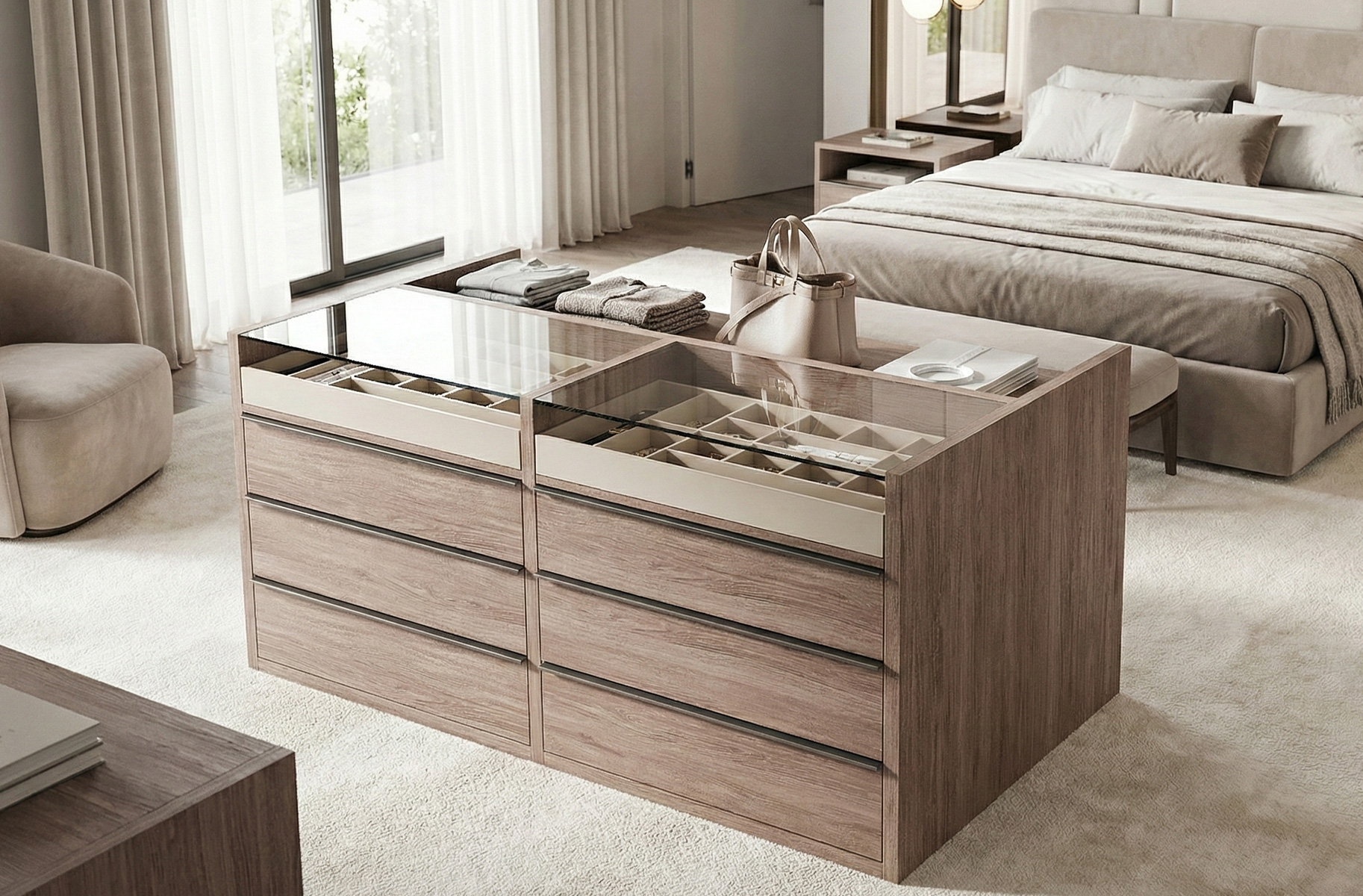 Zarif tasarımıyla öne çıkan Diamond Ada Şifonyer, yatak odanıza sofistike bir hava katar. Geniş ve fonksiyonel çekmeceleri sayesinde eşyalarınızı düzenli ve kolay erişilebilir şekilde saklamanızı sağlar. Estetik detayları ve kaliteli işçiliğiyle her kullanımda konfor sunar. Dayanıklı yapısıyla uzun ömürlü bir şıklık arayanlar için ideal bir tercih.