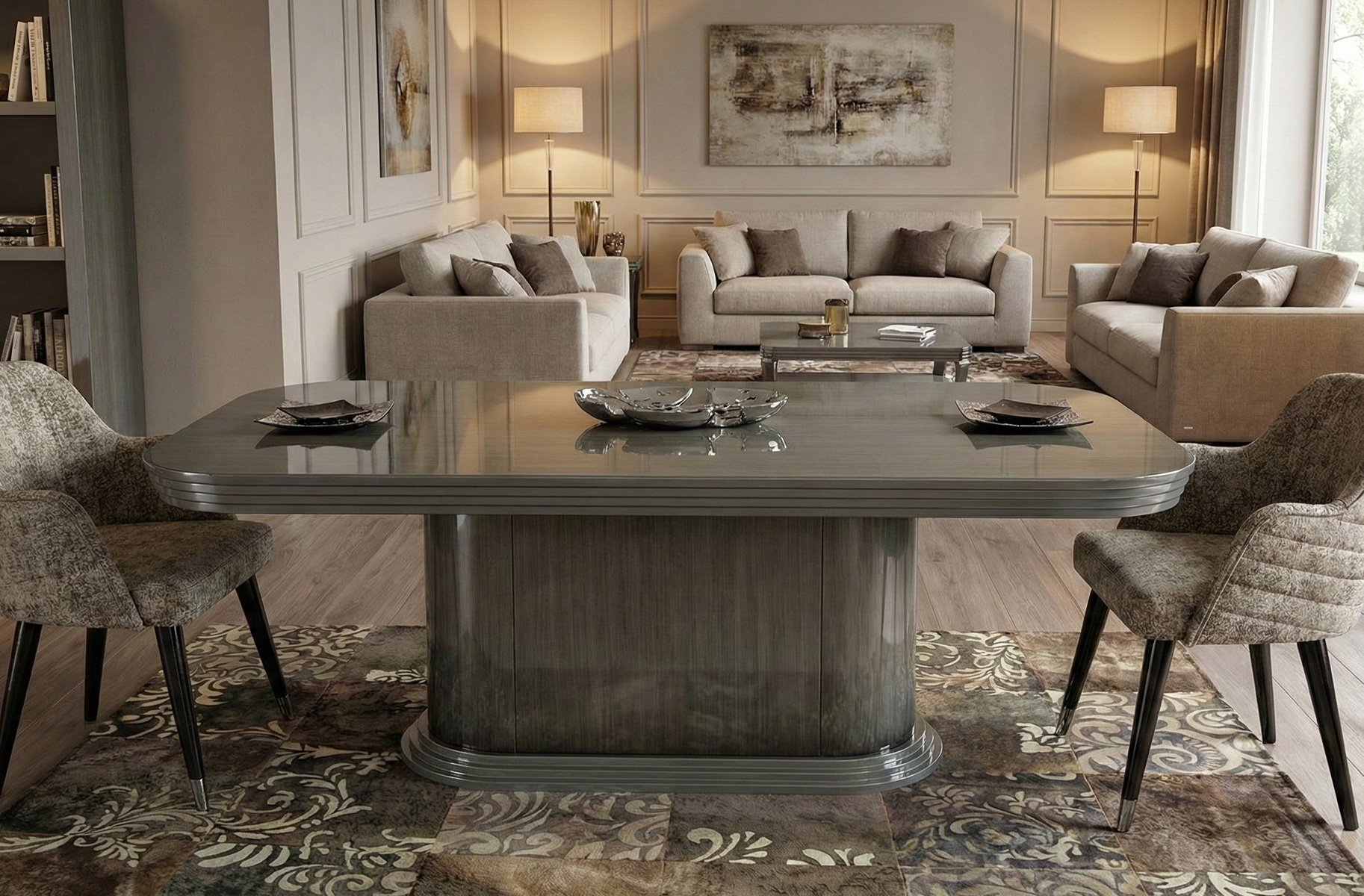 Vip Yemek Masası, modern tasarım çizgisi ve rafine yüzey detaylarıyla yemek alanına prestijli bir karakter kazandırır. Dengeli formu ve sağlam konstrüksiyonu uzun süreli kullanım sağlarken, farklı sandalye ve dekorasyon stilleriyle kolayca uyum sağlar. Hem günlük kullanımlarda hem de özel davetlerde estetik bir merkez oluşturan Vip, şıklığı ve fonksiyonelliği bir arada sunar.